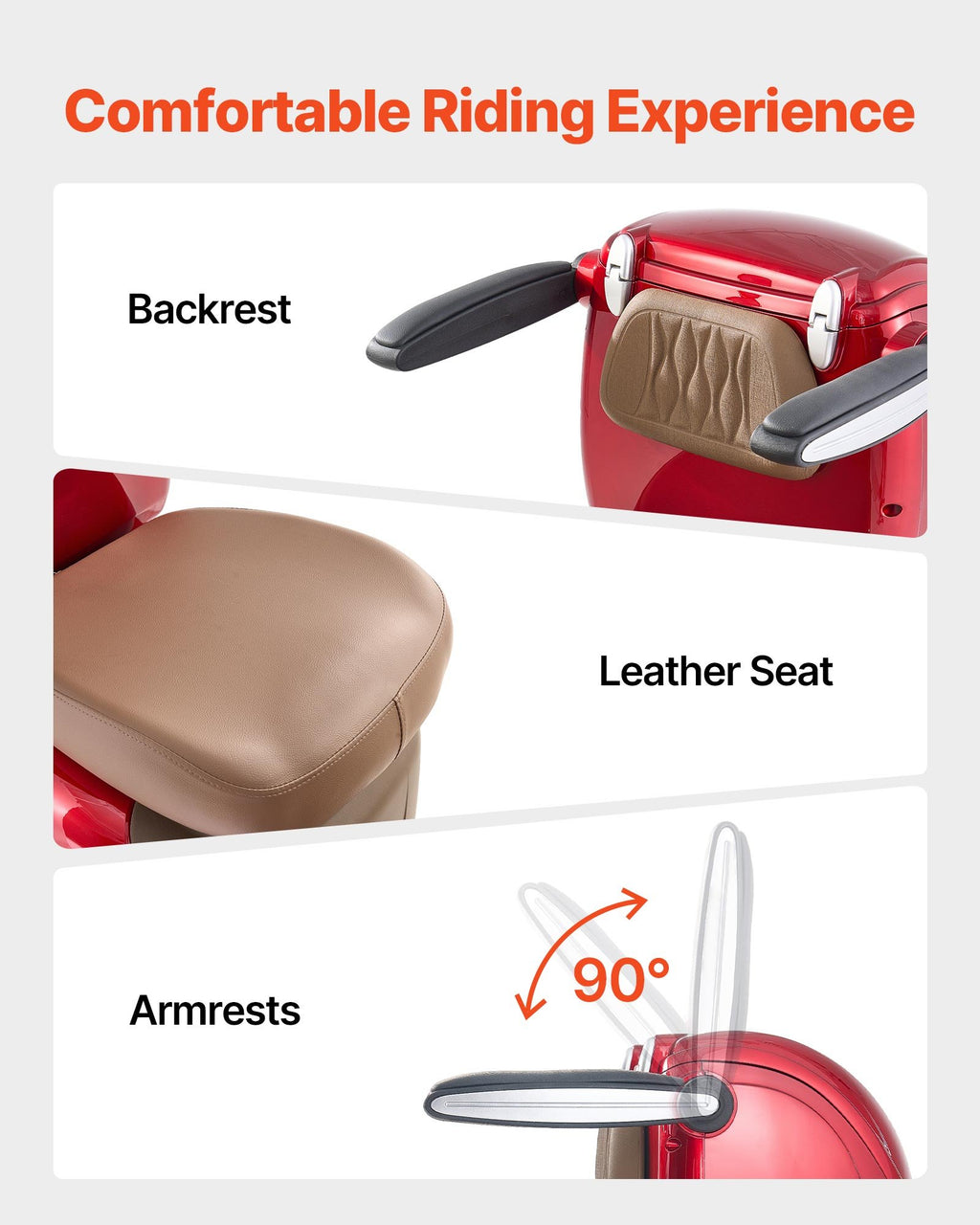 Комфортабельные диваны: Šim smagās klases mobilitātes skrejritenim ir ērts sēdeklis ar atbalstošu atzveltni. Roku balsti ir paceļami vai atlokāmi, lai atvieglotu iekāpšanu un izkāpšanu. Aizmugurējā uzglabāšanas kaste un priekšējais nodalījums panelī nodrošina praktisku vietu ikdienas vajadzībām un iepirkumiem