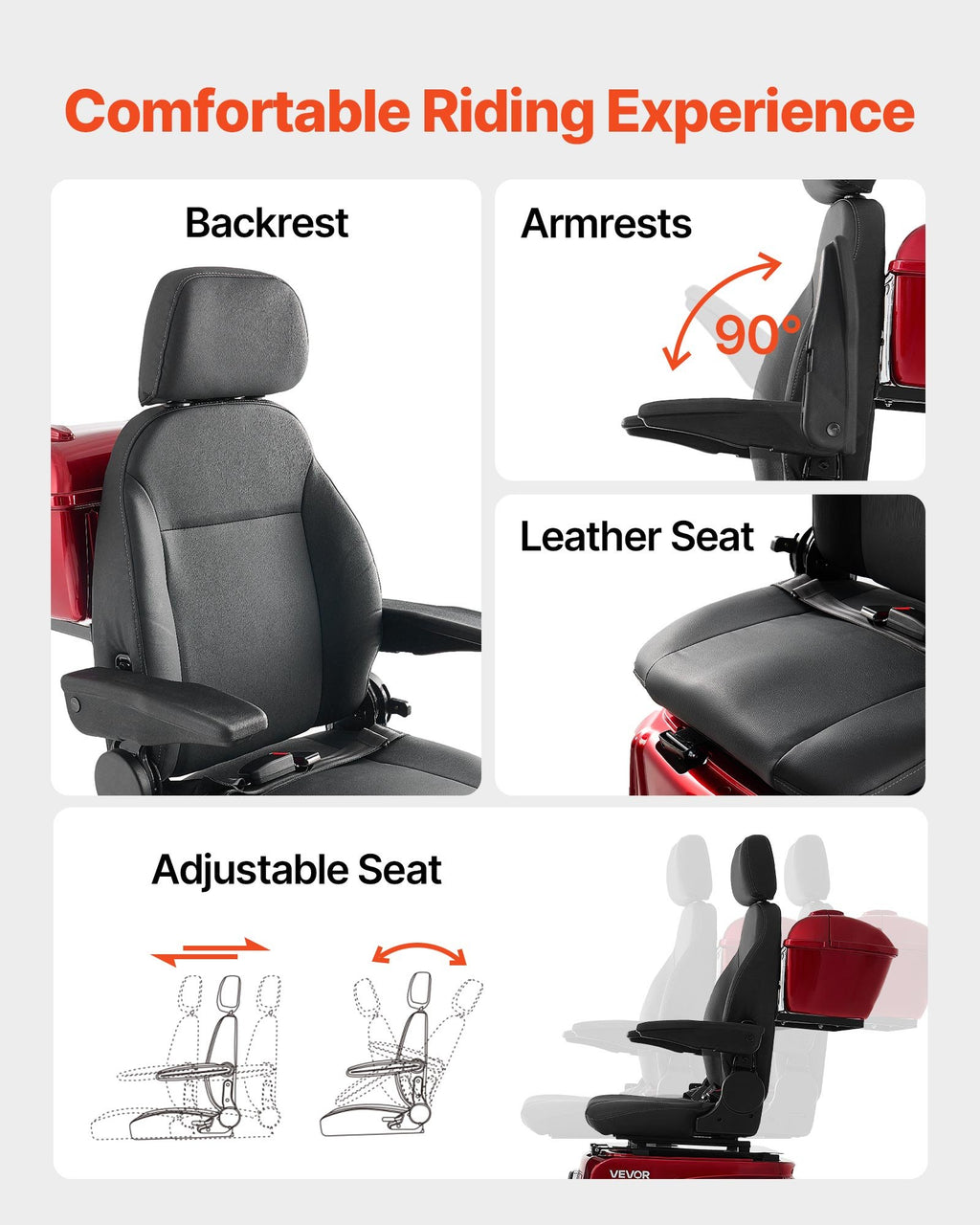 VEVOR smagās klases 4 riteņu mobilitātes skrejritenis senioriem un pieaugušajiem, kravnesība līdz 226,8 kg, nobraukums līdz 35 km, 3 ātrumu režīmi, 1000 W visurgājējs elektriskais mobilitātes skrejritenis/ratiņkrēsls ar kāpuma spēju līdz 20°