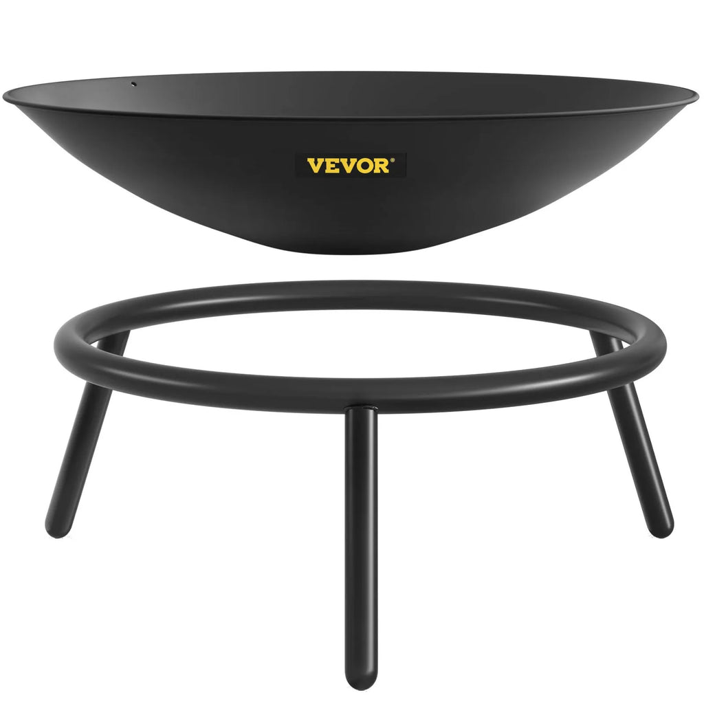 VEVOR ugunskura bļoda 56 cm, dziļa apaļa oglekļa tērauda ugunskura bļoda malkai, āra terasēm, pagalmiem un kempingiem, ar drenāžas atveri un ugunskura koka kociņu, melna